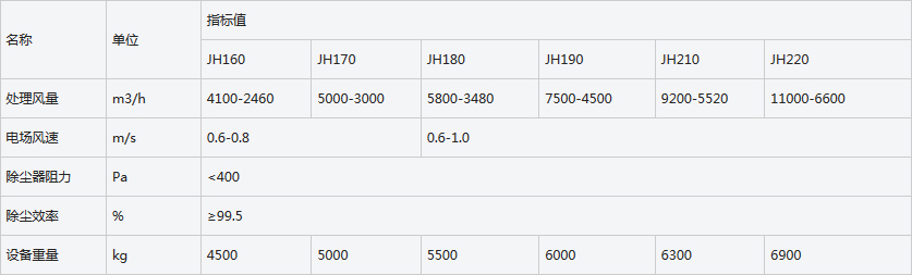 JH型集合式高壓靜電除塵器技術(shù)性能: