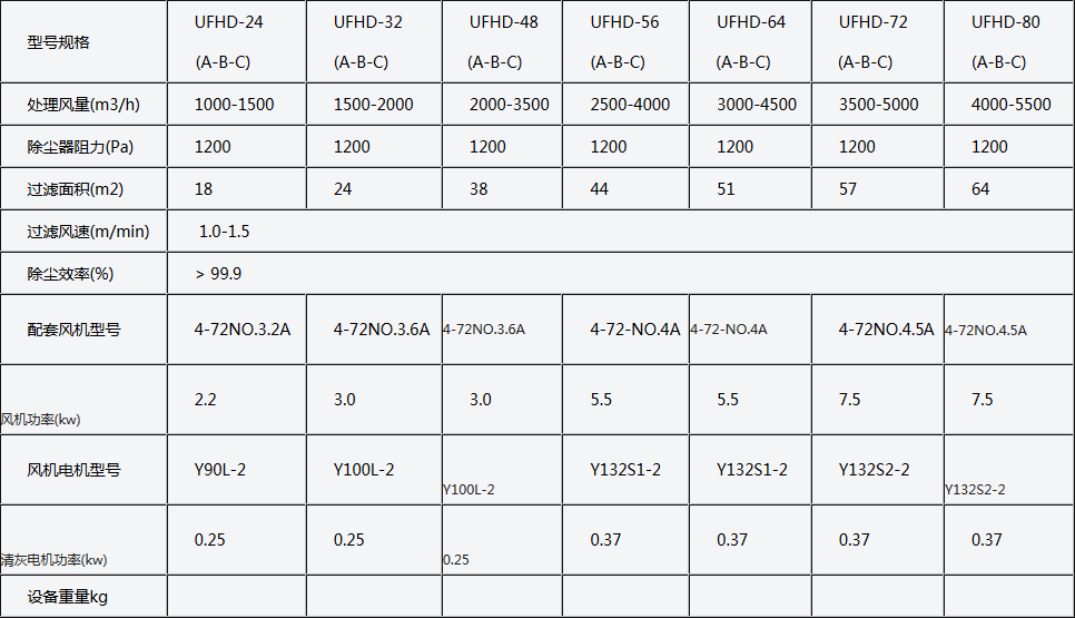 UFHD系列單機收塵器性能參數(shù)-表