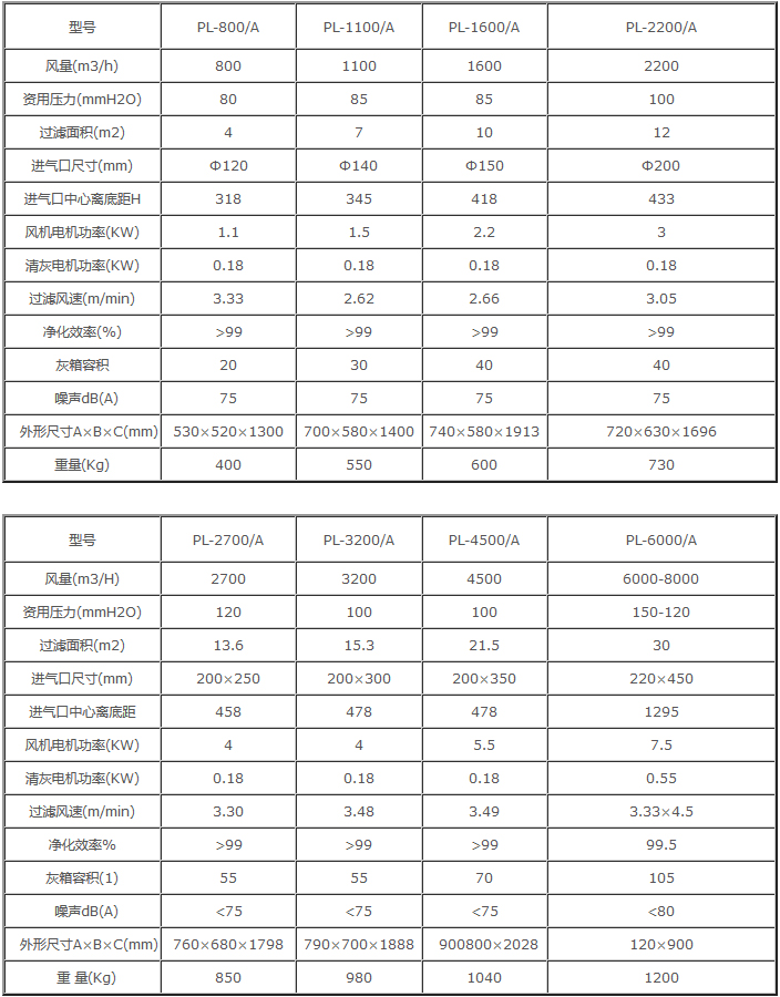 PL-A型系列單機除塵設(shè)備技術(shù)性能: