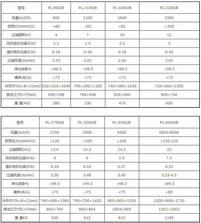 PL-B型系列單機除塵設(shè)備技術(shù)性能: