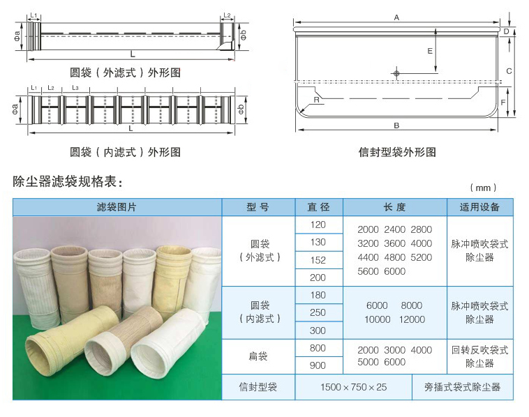 濾袋是決定袋式除塵器除塵效率和工作溫度的關(guān)鍵元件,更換濾袋的費(fèi)用又是袋式除塵器的主要維修費(fèi)用。濾袋工作壽命關(guān)系到除塵器的運(yùn)行狀態(tài)和成本。因此,選擇合適的濾料和設(shè)計(jì)合理的結(jié)構(gòu)就尤為重要了。